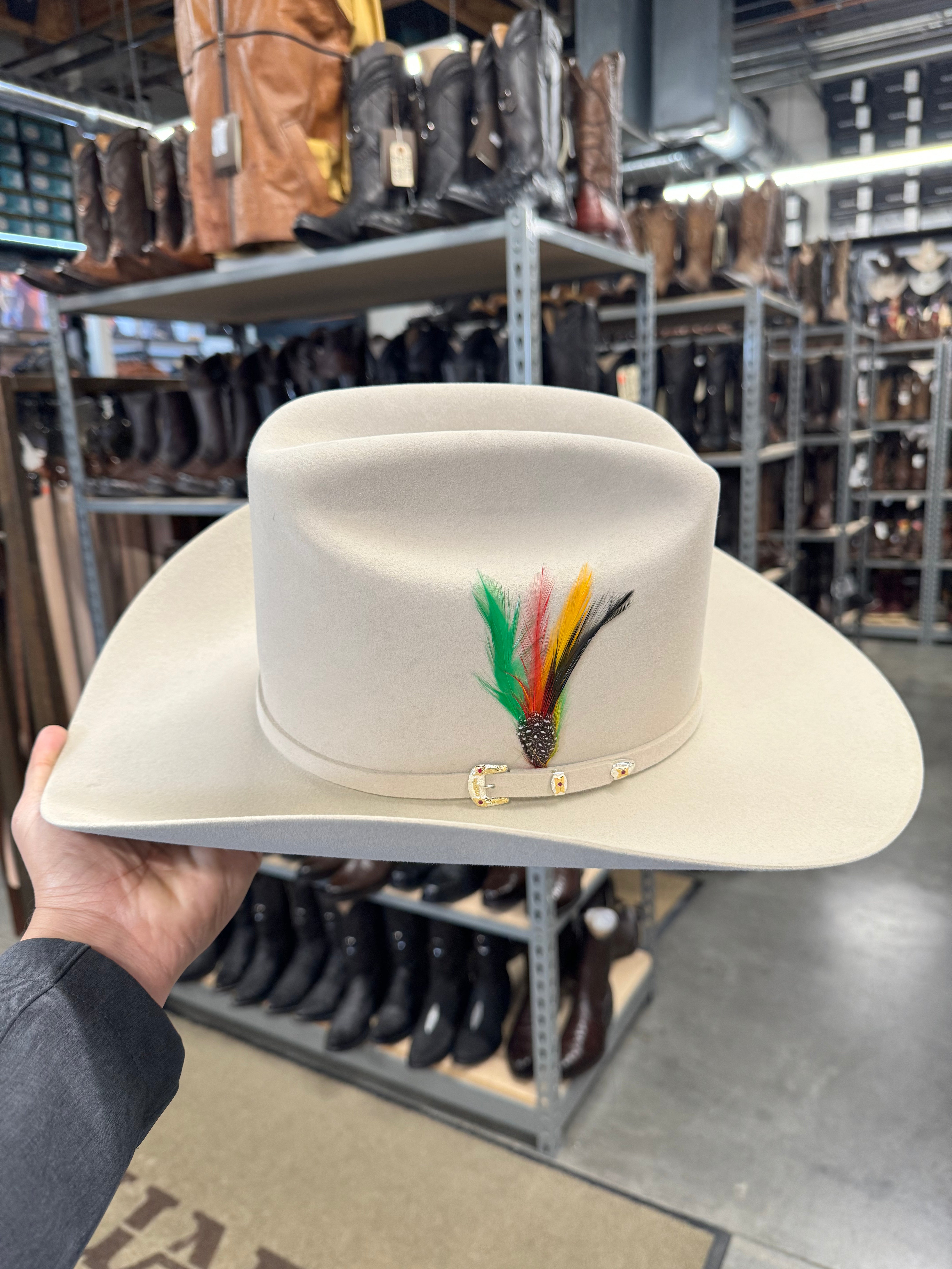 The El Patron 48 Premier 30X Cowboy Hat is constructed of 30X quality fur felt and features an oval cattleman crown and self-matching hat band accented with sterling silver JBS buckle set with gold overlays and inset stones. 30X Quality Fur Felt. Made in USA.
